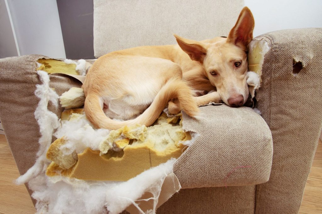 • Destructive behavior such as chewing furniture, tearing up cushions, or scratching at doors. This reaction is often an outlet for their pent-up anxiety.